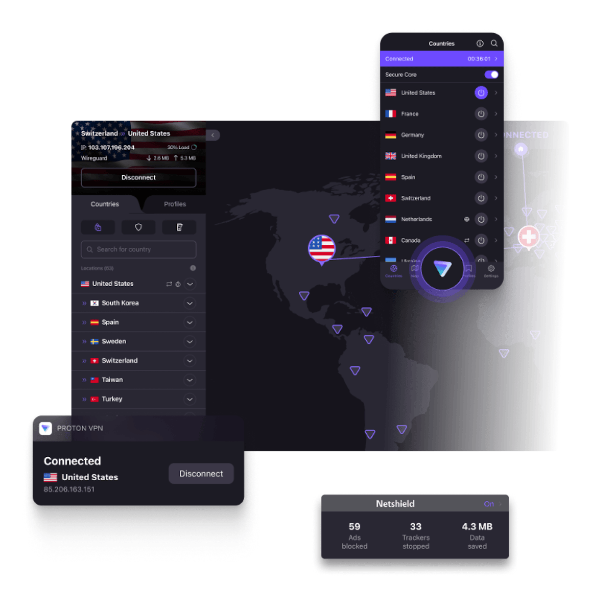 Block ads, stop trackers and protect yourself from malware with Proton VPN’s NetShield.