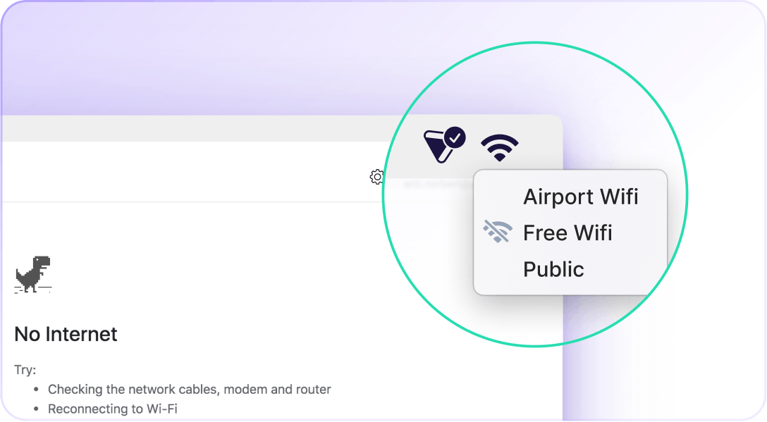 Unser Kill-Switch hat keine Auswirkungen auf deine Verbindungsgeschwindigkeit oder dein Surfen und bietet eine wertvolle letzte Verteidigungslinie. Er stellt sicher, dass dein Surfen privat bleibt, wenn dein Internetanbieter einen kurzen Ausfall hat oder du das Mini-Netzwerk wechselst.