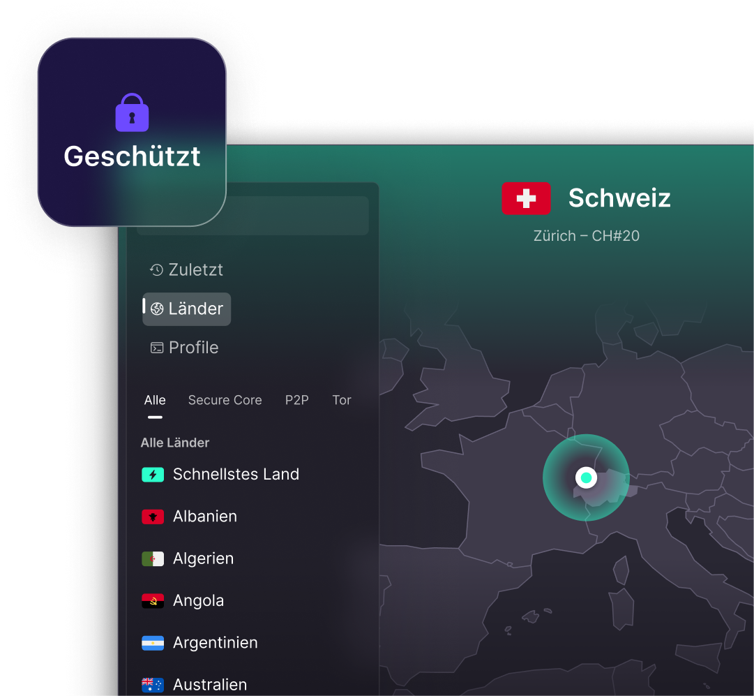 Proton VPN verschlüsselt deine Internetverbindung und blendet deine IP-Adresse und deinen Standort aus, damit du online privat und sicher bleibst. So schützt du dich mit Proton VPN: