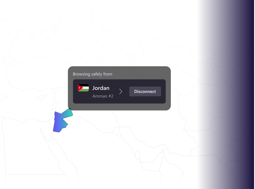 Verbinde dich mit einem jordanischen Server, um mit Leichtigkeit, Privatsphäre und Sicherheit im Internet zu surfen.