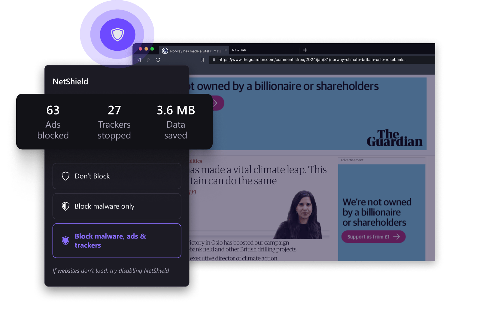 Our apps use DNS filtering to prevent your browser from loading websites that host malware, and to block ads and online trackers. NetShield is available for VPN Plus and Proton Unlimited users.