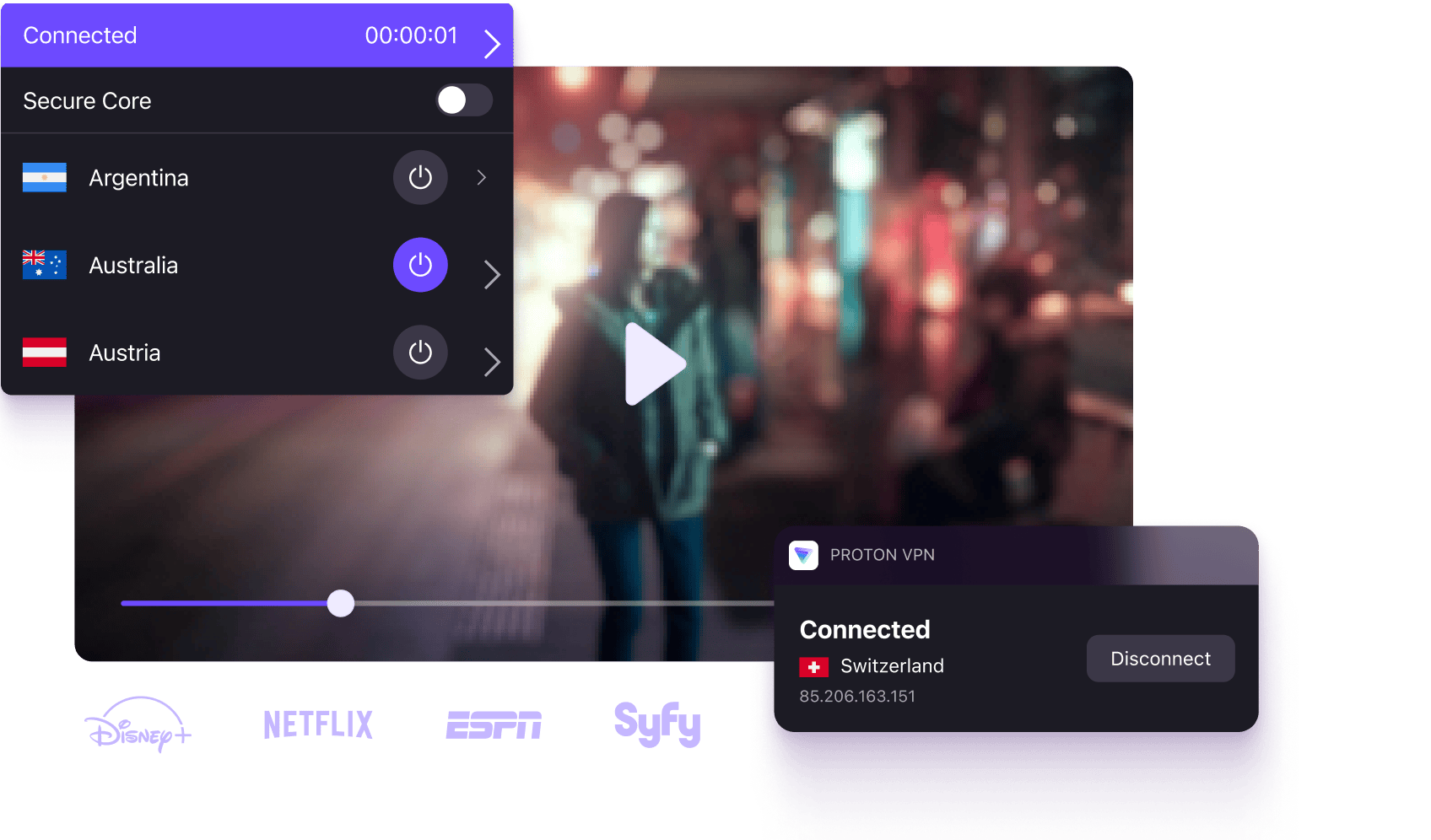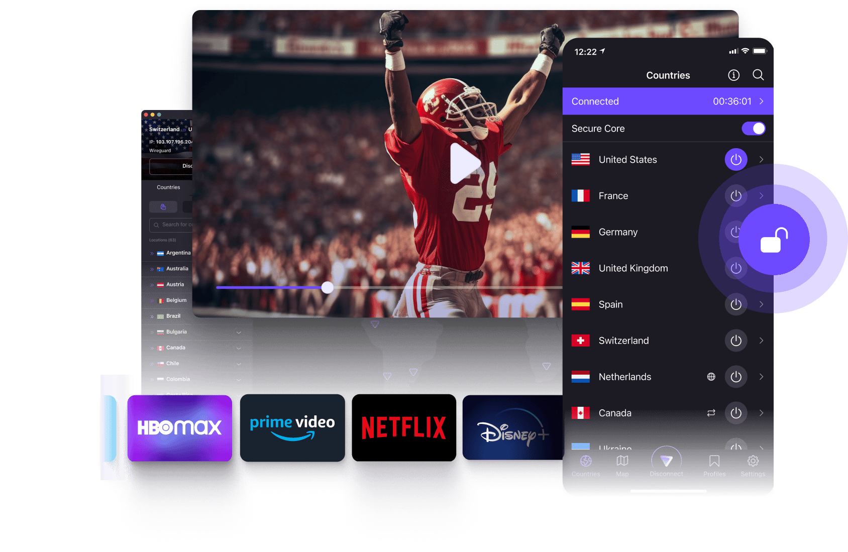 ProtonVPN unblocks popular streaming services like Netflix, Hulu, Disney+, and more, for anyone with a VPN Plus or Proton Unlimited Plan.