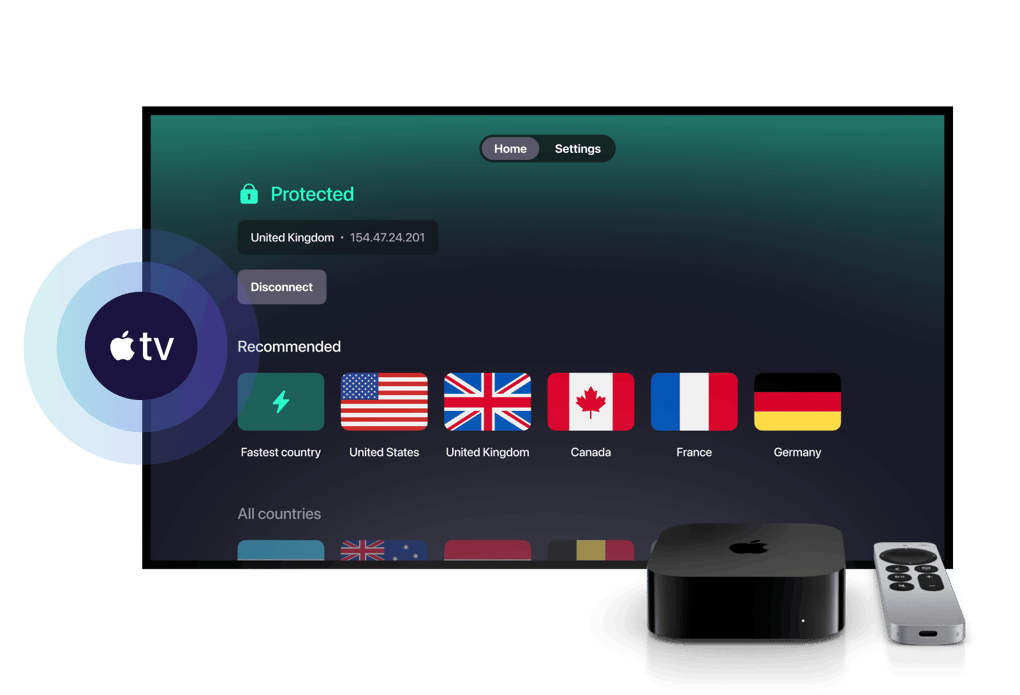 Una aplicación VPN segura y de alta velocidad para su Apple TV