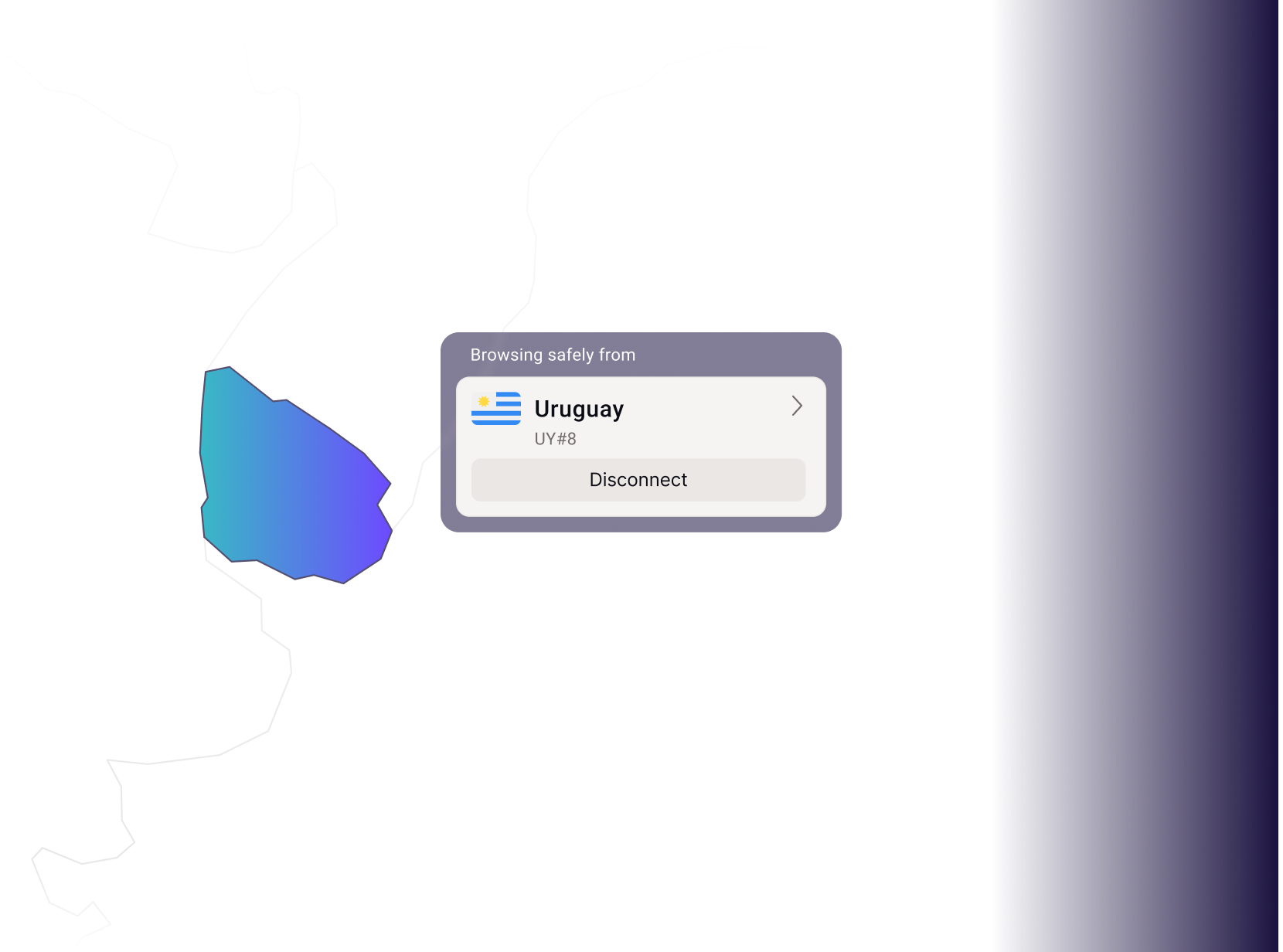 Conéctese a un servidor de Uruguay para navegar por internet con facilidad, privacidad y seguridad.