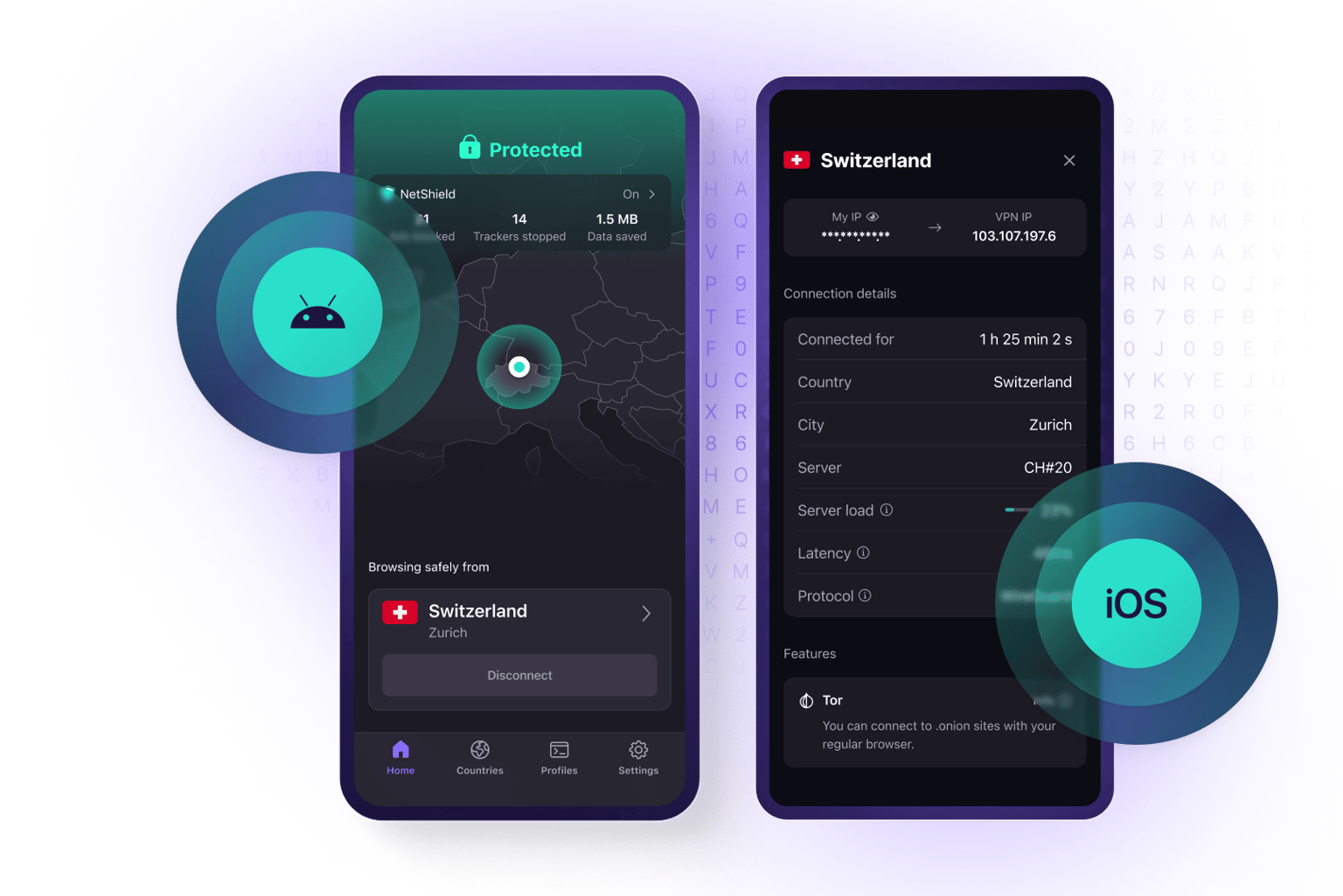 Con Proton VPN, puede mantener la privacidad cuando navega en sus dispositivos móviles con nuestras aplicaciones de VPN gratuitas para iOS, iPadOS y Android.