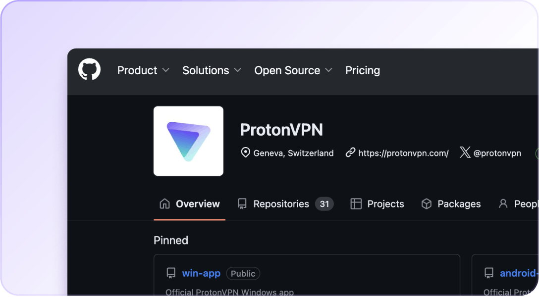 La transparencia es la base de nuestro compromiso con la privacidad. Como todas nuestras aplicaciones, Proton VPN es de código abierto(ventana nueva) y está auditada de forma independiente. Cualquiera puede revisar nuestro código para comprobar nuestras afirmaciones sobre seguridad.