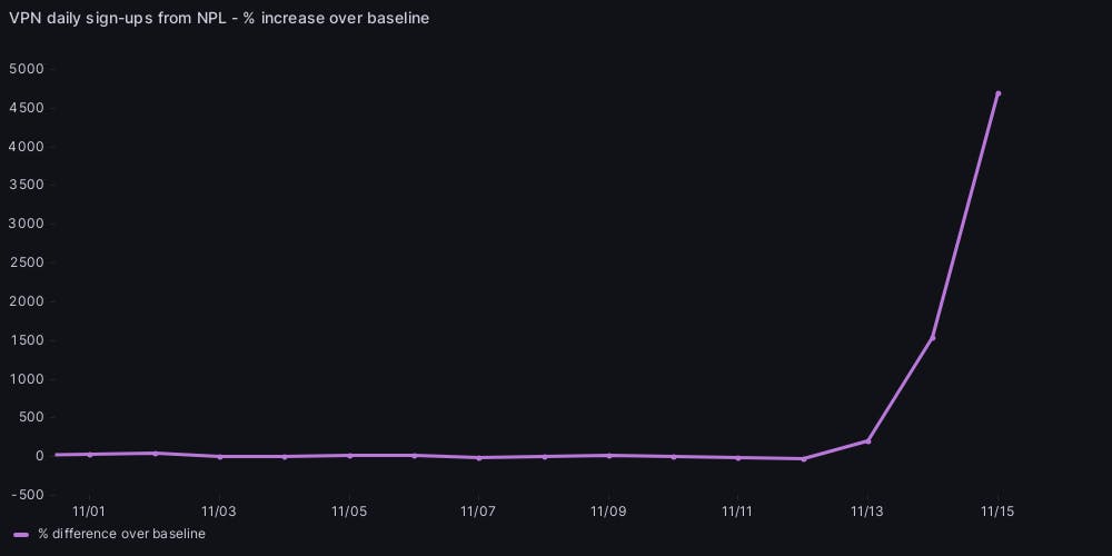 Les VPN sont des outils essentiels pour lutter contre la censure d'internet. Chez Proton VPN, nous constatons régulièrement des pics d'inscription suite à des événements géopolitiques majeurs dans le monde, qu'il s'agisse de manifestations, d'élections contestées ou de répressions gouvernementales. Pour voir de quelle manière la censure sur internet est combattue dans le monde, nous avons commencé à documenter tous les pics significatifs d'utilisation de Proton VPN.