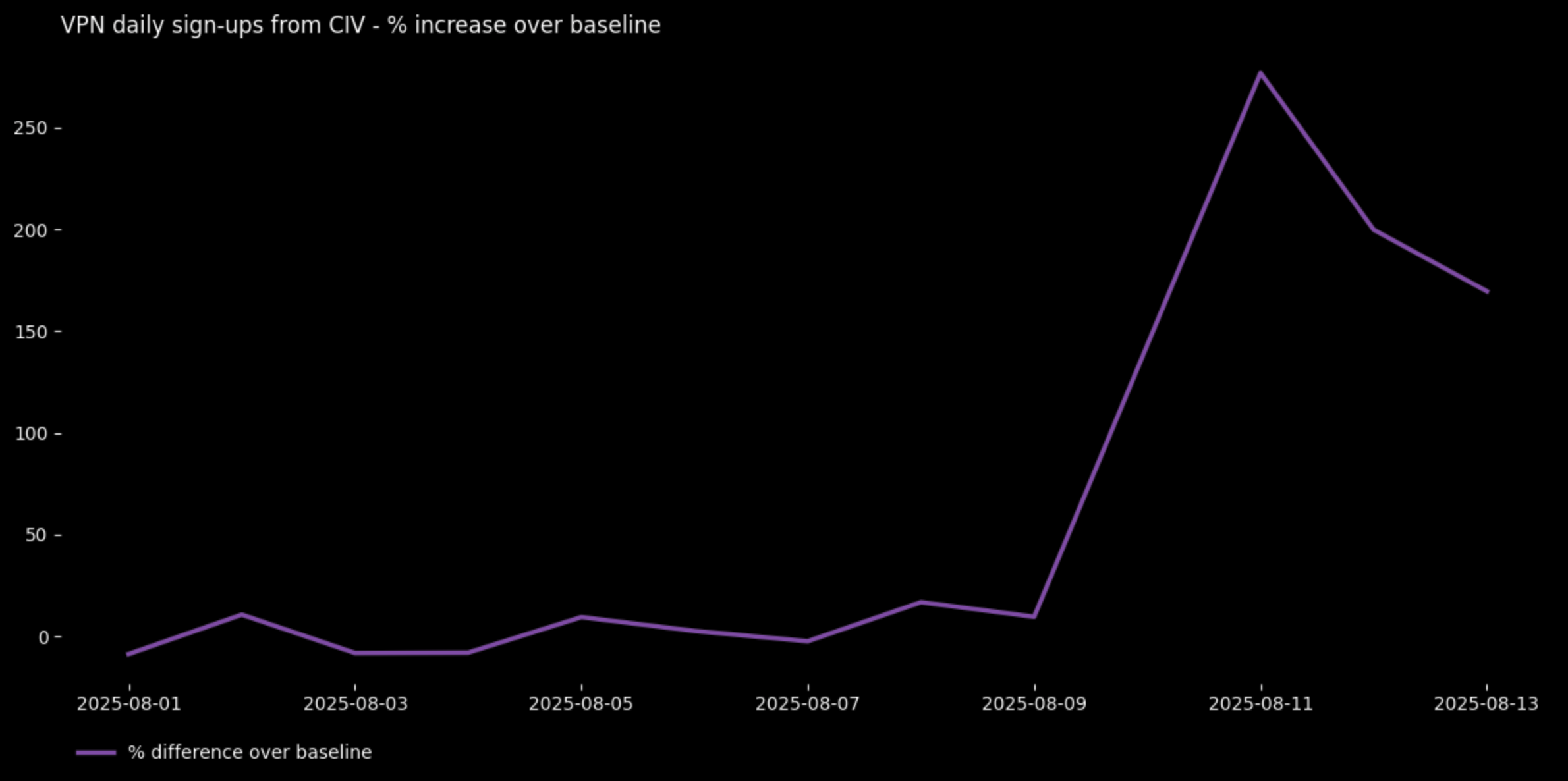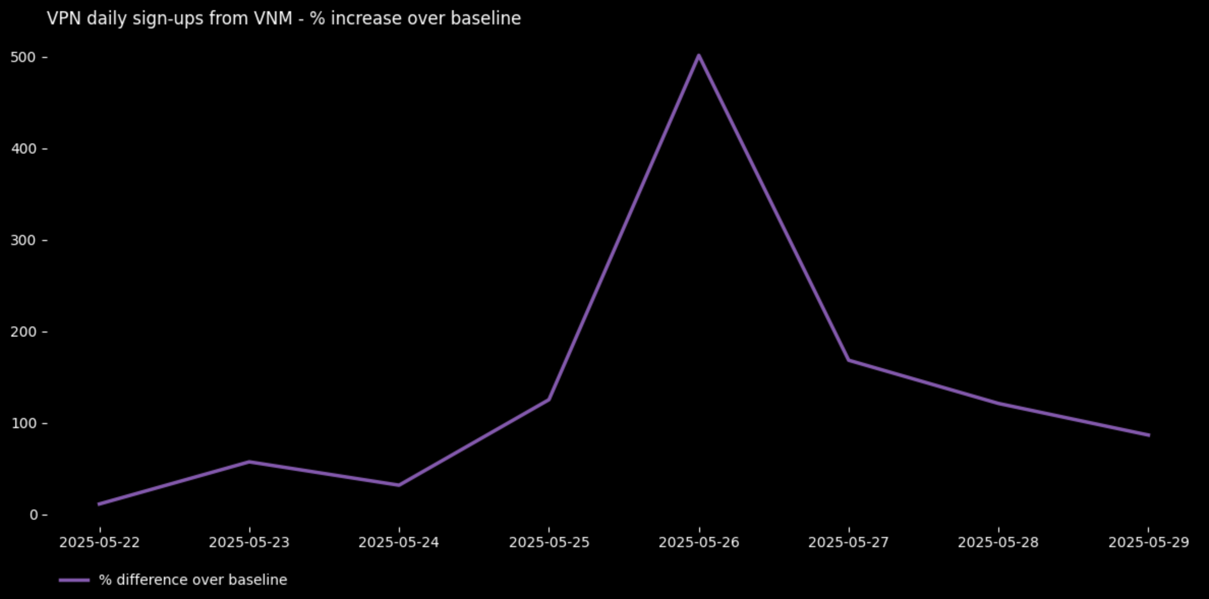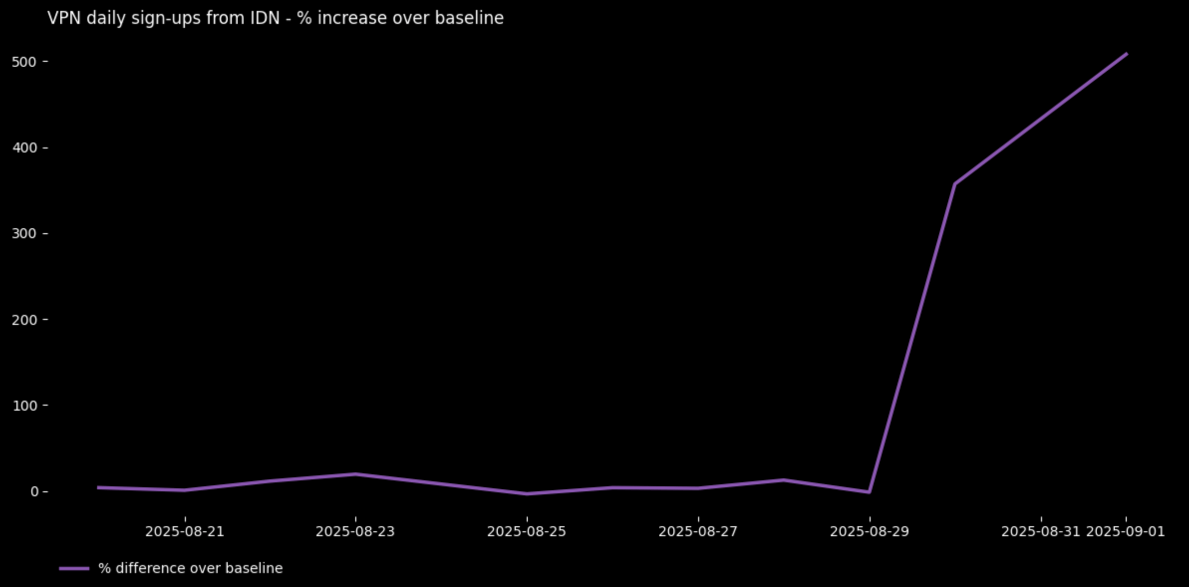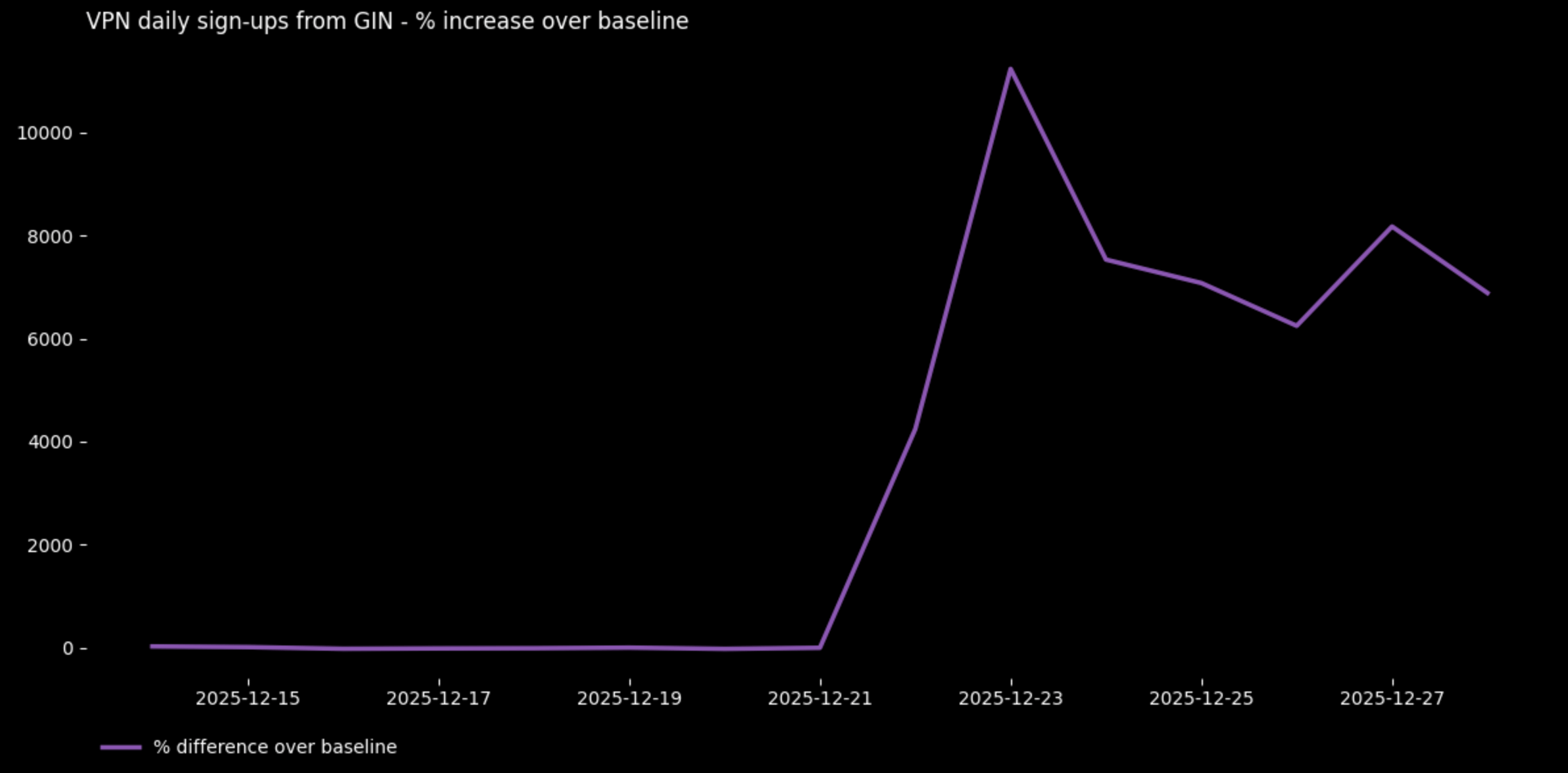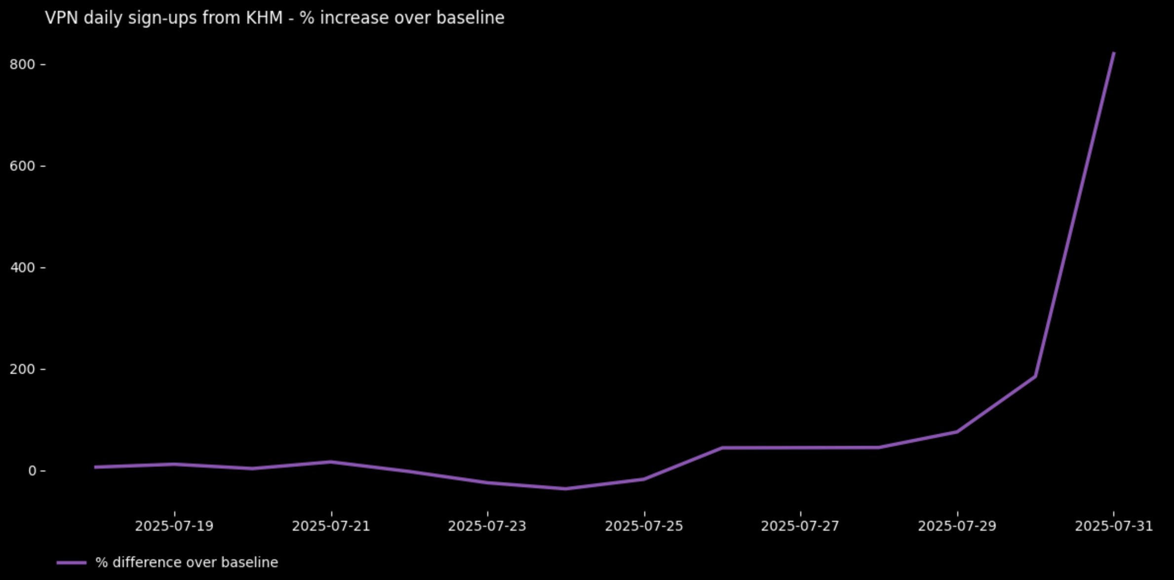 Lonjakan penggunaan VPN di tengah gencatan senjata yang rapuh antara bentrokan perbatasan Kamboja dan Thailand. Lonjakan tersebut sejalan dengan laporan pelanggaran gencatan senjata yang sedang berlangsung, ketegangan diplomatik, dan pemblokiran beberapa media Thailand yang dilaporkan.