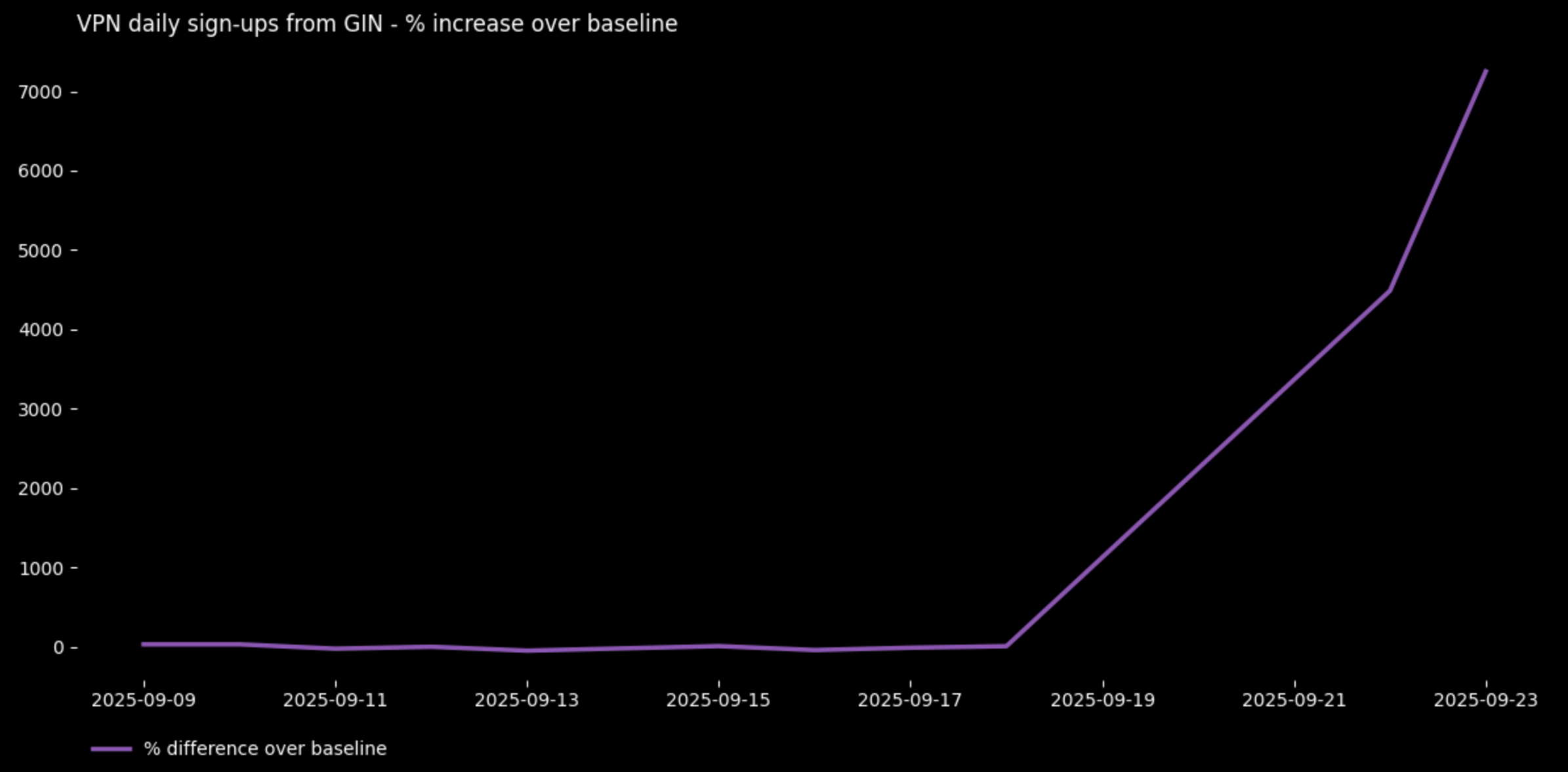 Peningkatan +7.000% dibandingkan garis dasar