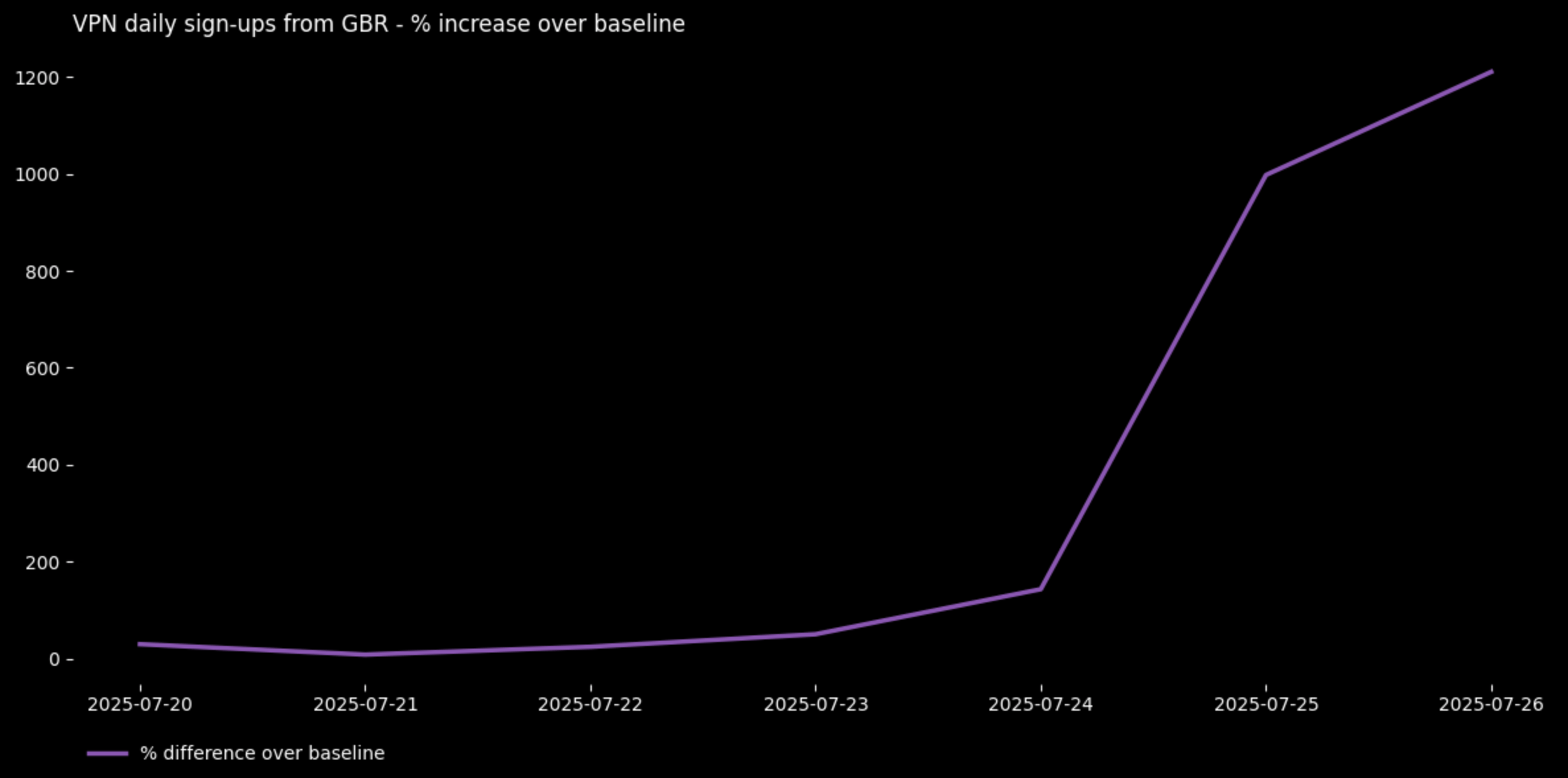 Mulai 25 Juli, Ofcom akan mulai menegakkan Undang-Undang Keamanan Daring, yang mewajibkan semua situs konten buatan pengguna untuk memverifikasi usia pengguna mereka yang mengakibatkan peningkatan pendaftaran per jam sebesar +1.400% pada hari itu.