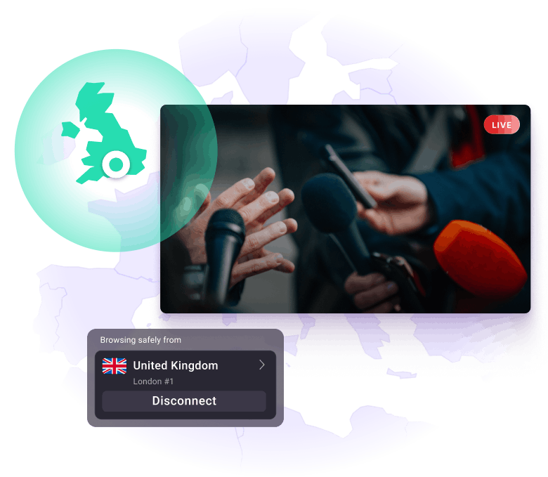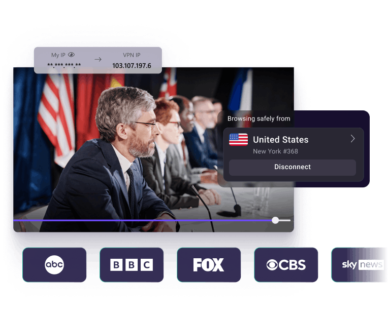 Jika ingin menonton acara televisi siaran langsung dari negara lain, hubungkan ke server di negara tersebut untuk menembus pemblokiran dan nikmati konten streaming yang sama seperti di rumah.