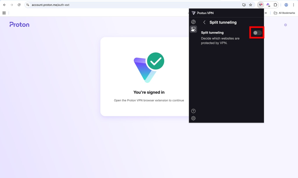 The Proton VPN browser extension icon will now appear directly on your browser’s toolbar.