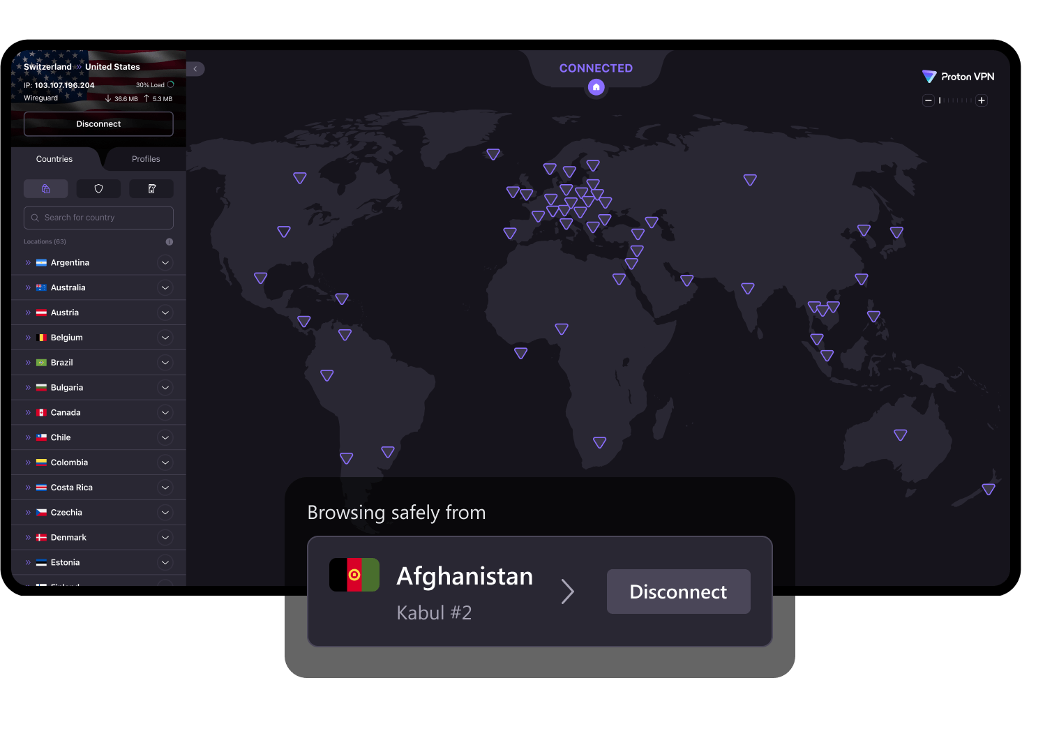 Lebih banyak alasan untuk terhubung ke server Proton VPN di Afganistan