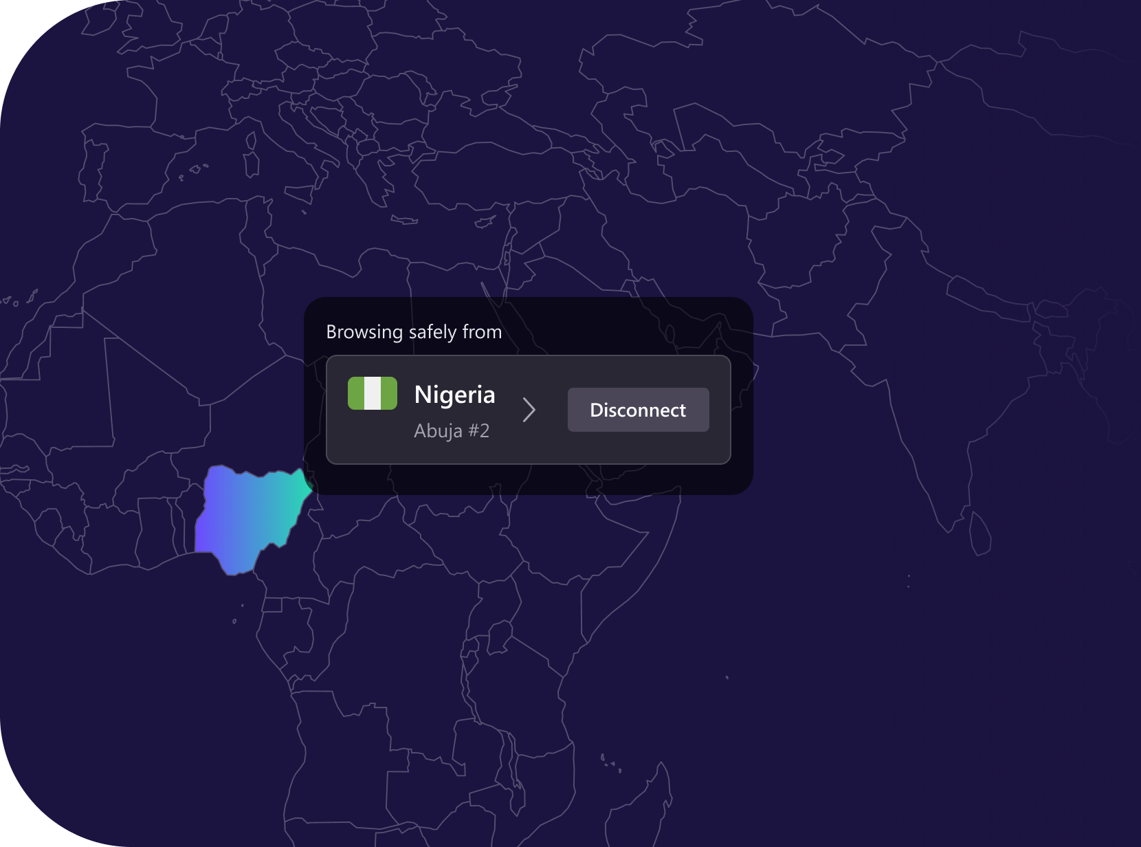 Terhubung ke server Nigeria untuk menjelajahi internet dengan mudah, privasi, dan keamanan.