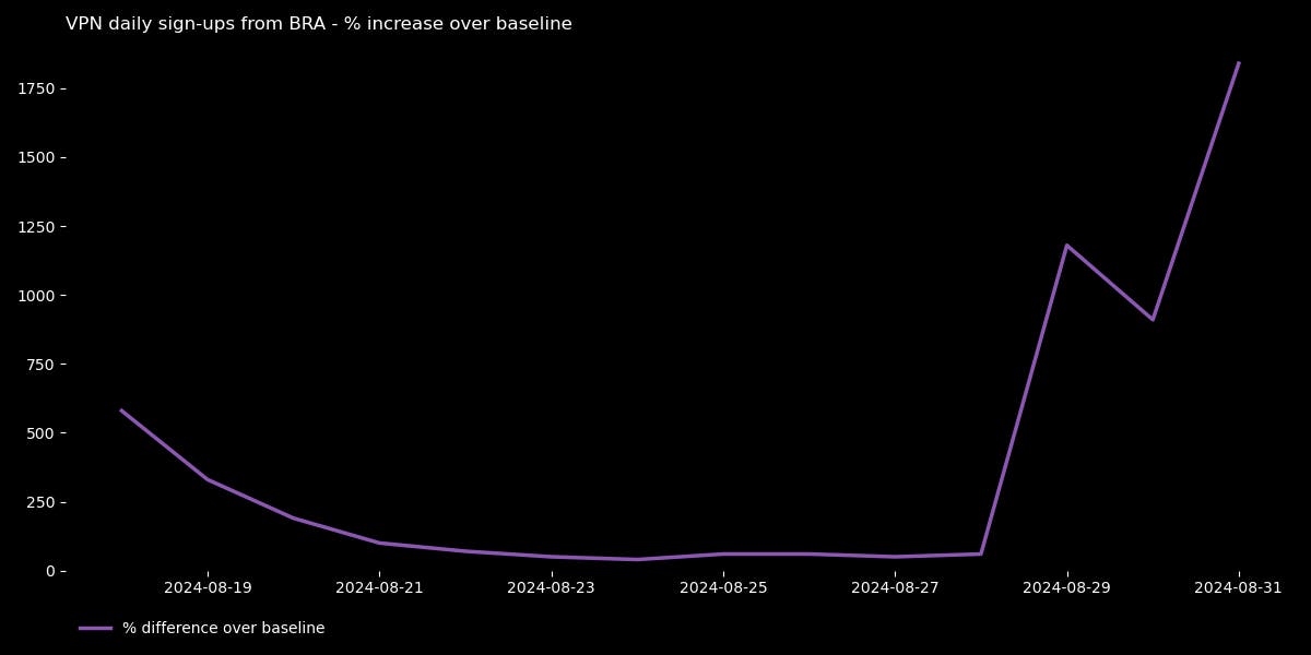 Sign ups to Proton VPN spiked following reports that X was to exit the country due to legal battles with a Brazilian judge over the platform’s responsibilities regarding content moderation.