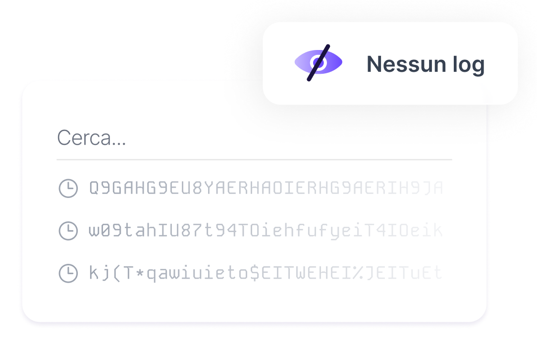 Proton VPN applica una rigorosa politica di non conservazione dei log, il che significa che non conserviamo alcun registro della tua attività online e non archiviamo i metadati.