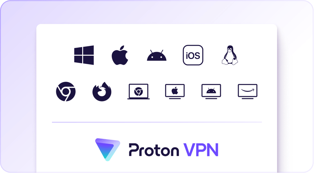 Proton VPNは、iPhone、Android、Mac、Windows、Linux、Fire TV Stick、Chromebook、Android TV、Apple TVなど、さまざまなプラットフォームやデバイスでご利用いただけます。