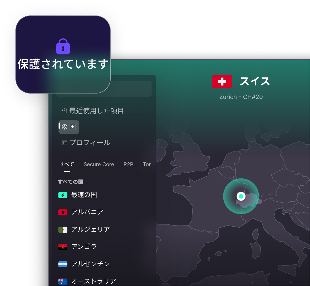 Proton VPNは、インターネット接続を暗号化し、IPアドレスと位置情報を隠すことで、オンラインでのプライバシーとセキュリティを守ります。 Proton VPNでセキュリティを確保する方法は次のとおりです。