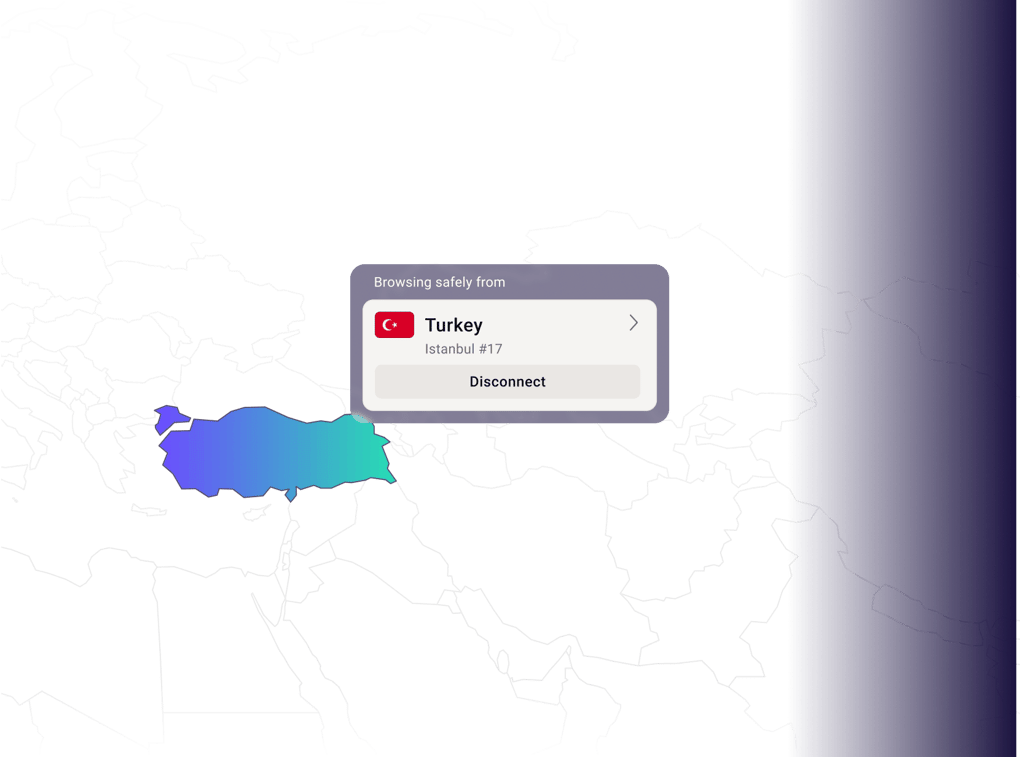 インターネットをプライベートかつ安全にブラウジングするために、トルコのサーバーに接続します。