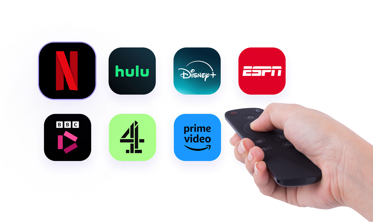 Watch popular streaming platforms, including Netflix, Hulu, and Disney+.
