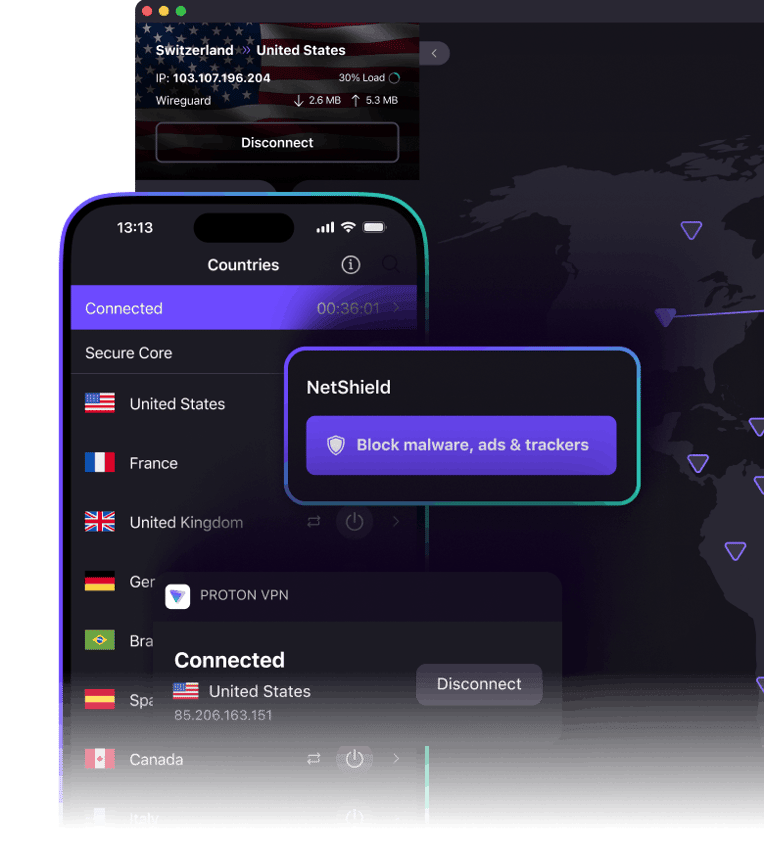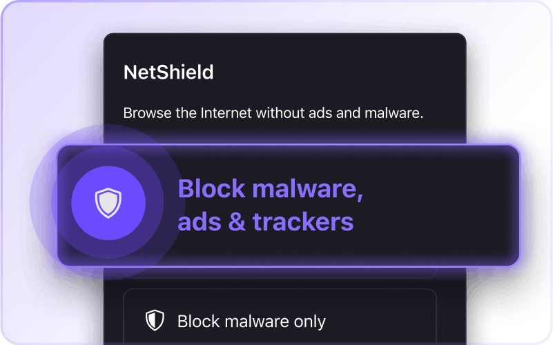 Block ads, trackers, and malicious scripts with NetShield Ad-blocker, our DNS filtering feature that prevents connections to unwanted domains.