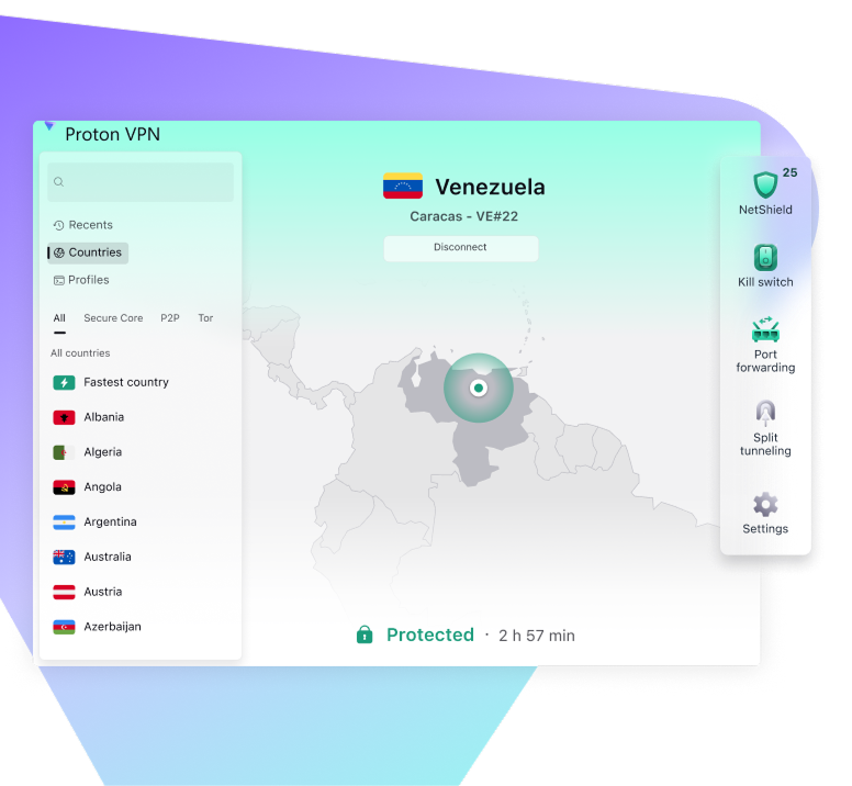 Proton VPN lets you choose your virtual location, so you can enjoy your favorite shows and content with a secure, private connection.