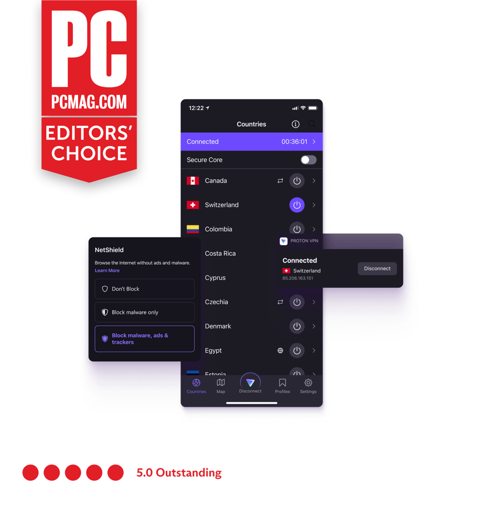 "Its premium subscription is an excellent value for any VPN, and it's made all the better for including secure email, storage, and calendar tools. For all that, it gets a rare five-star rating and earns our Editors' Choice award."