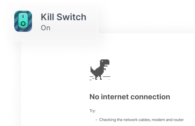Nosso kill switch desativa sua conexão com a Internet se a conexão VPN cair, mantendo seu endereço IP privado.