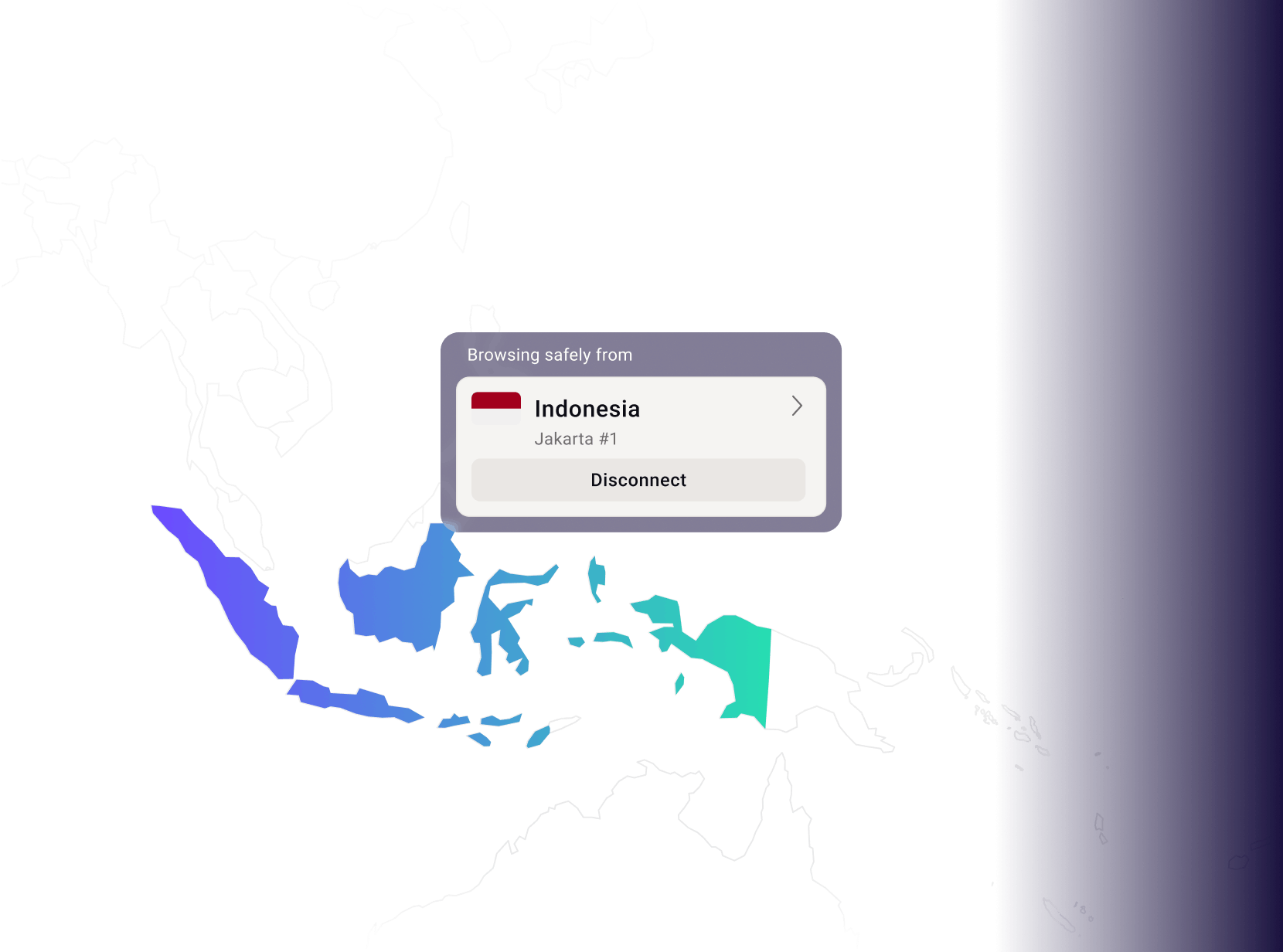 Conecte-se a um servidor indonésio para navegar na internet com facilidade, privacidade e segurança.