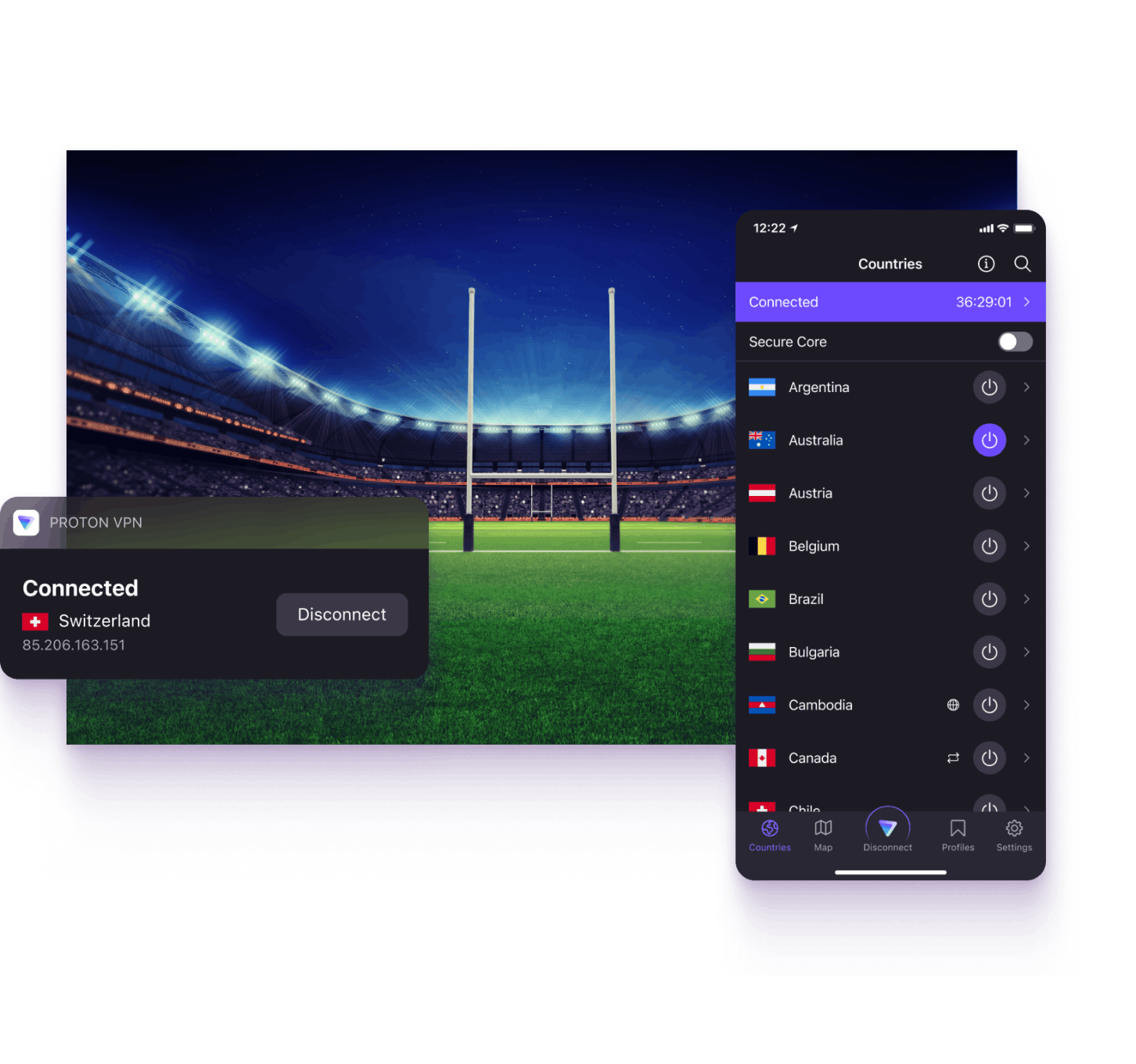 Proton VPN offers rugby fans worldwide a trusted and secure way to live stream every match with high speeds and an easy-to-use interface.