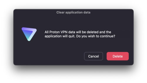1. Open the Proton VPN app and go to the macOS menu bar → Help → Clear Application Data.