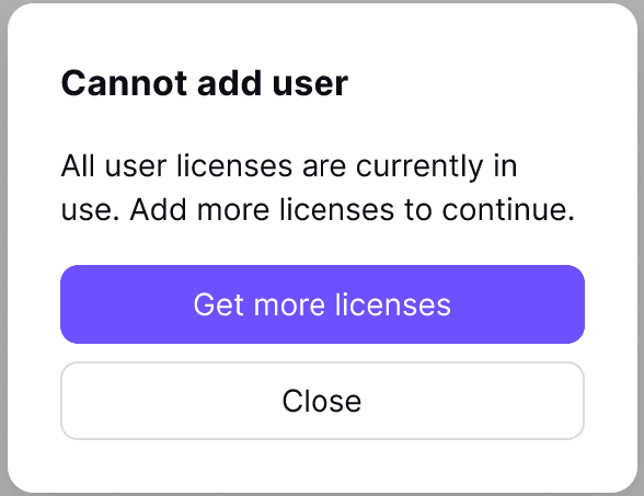 If you try to add more users than you have licenses, you’ll encounter the following error message: