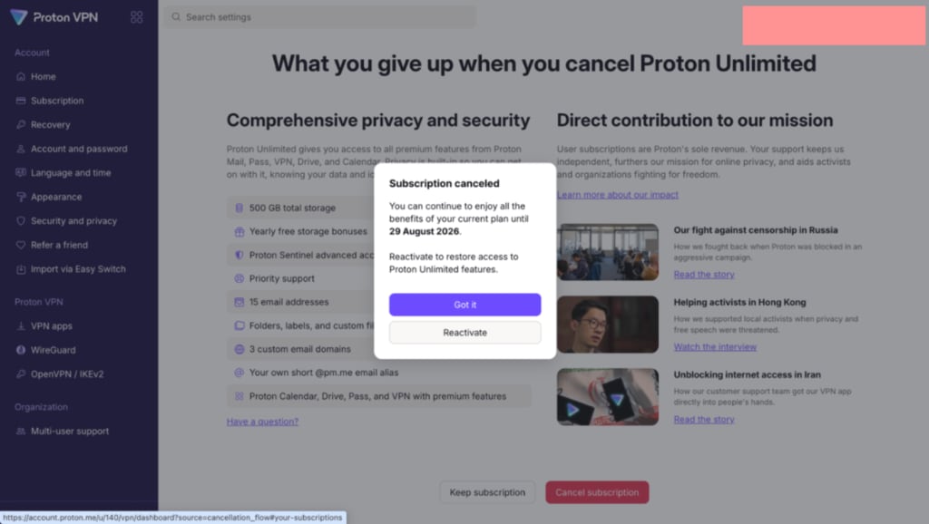 How to cancel a Proton VPN subscription