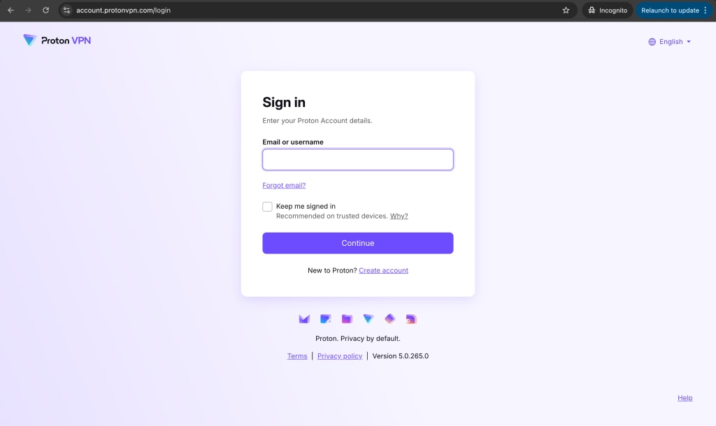 - Go to https://account.protonvpn.com and sign in.