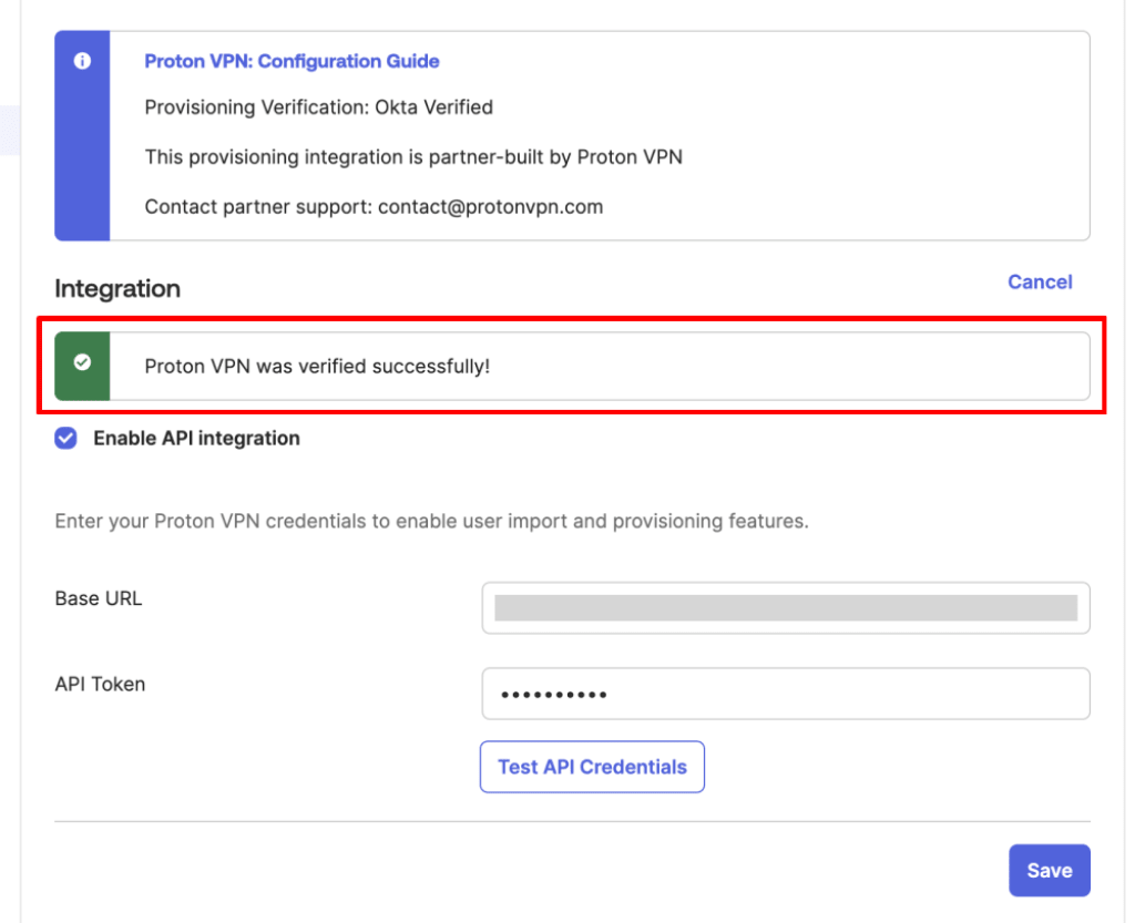 - Base URL: Paste in the SCIM base URL from Proton VPN