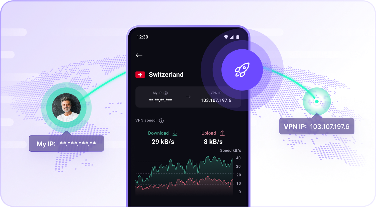ดาวน์โหลดแอปและเข้าสู่ระบบ Proton VPN เชื่อมต่อกับเซิร์ฟเวอร์ Plus ในประเทศบ้านเกิดหรือ เซิร์ฟเวอร์ Plus ใดก็ได้ในกว่า 120 ประเทศ