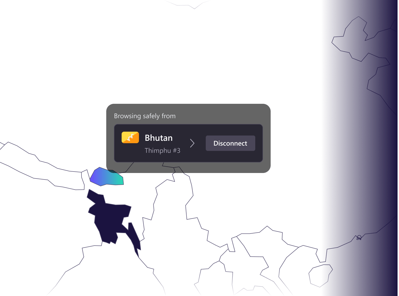 เชื่อมต่อกับเซิร์ฟเวอร์ภูฏานเพื่อท่องอินเทอร์เน็ตด้วยความสะดวก เป็นส่วนตัว และปลอดภัย