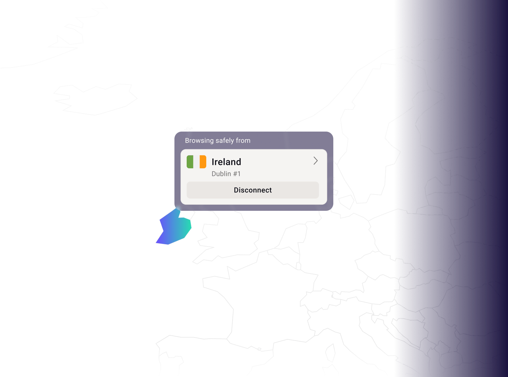 เชื่อมต่อกับเซิร์ฟเวอร์ของไอร์แลนด์เพื่อท่องอินเทอร์เน็ตได้อย่างสะดวก มีความเป็นส่วนตัว และปลอดภัย