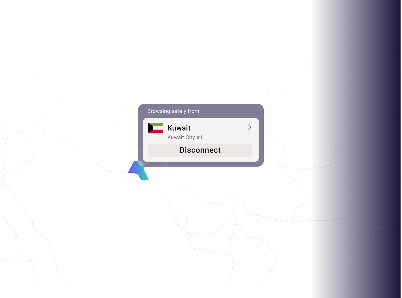 ท่องอินเทอร์เน็ตด้วยที่อยู่ IP ของคูเวตไม่ว่าจะอยู่ที่ใดในโลก โดยเชื่อมต่อกับหนึ่งในเซิร์ฟเวอร์ VPN ในคูเวตที่ปลอดภัย สำหรับผู้ที่ทำการตรวจสอบเครือข่าย ทราฟฟิกเว็บจะปรากฏเสมือนว่าอยู่ในคูเวต