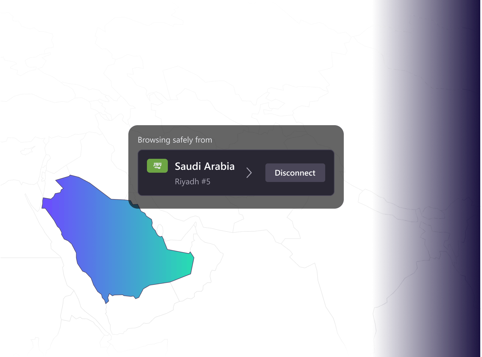 เชื่อมต่อกับเซิร์ฟเวอร์ซาอุดีอาระเบียเพื่อท่องอินเทอร์เน็ตอย่างสะดวก มีความเป็นส่วนตัว และปลอดภัย