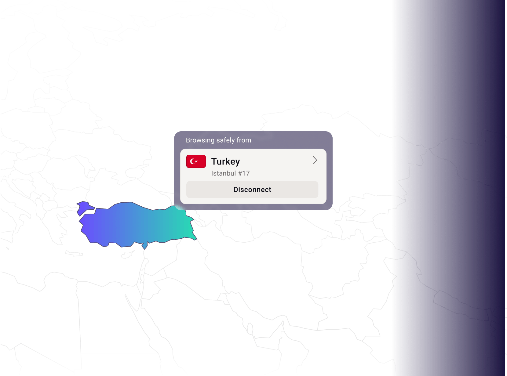 เชื่อมต่อกับเซิร์ฟเวอร์ VPN ในตุรกีเพื่อเข้าถึงเว็บไซต์ ข่าวสาร และเนื้อหาอื่นๆ ที่ถูกบล็อกในท้องถิ่น