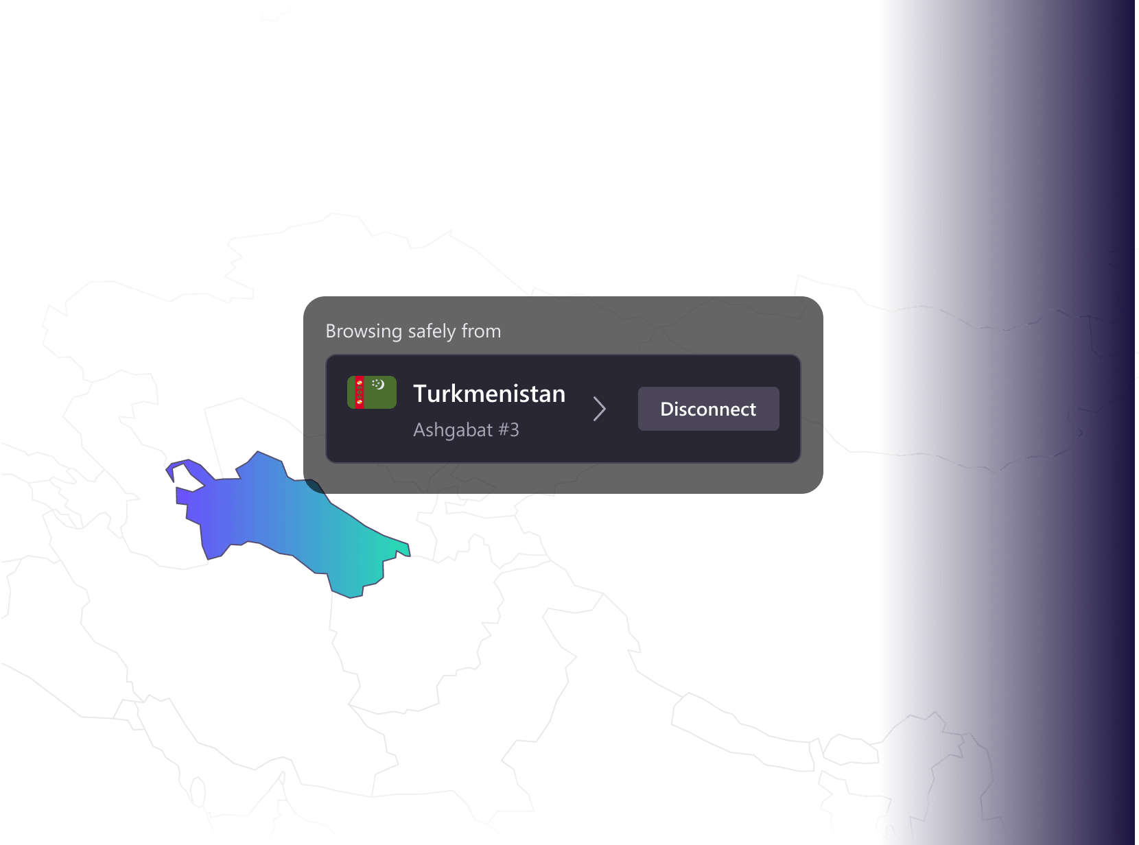 เชื่อมต่อกับเซิร์ฟเวอร์ VPN ในเติร์กเมนิสถานเพื่อเข้าถึงเว็บไซต์ ข่าวสาร และเนื้อหาอื่น ๆ ที่ถูกบล็อกในพื้นที่