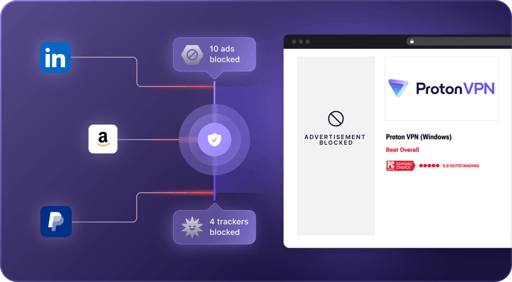 Proton VPN NetShield reklam engelleyicisi reklamları, etkinlik izleyicileri ve kötü amaçlı yazılımları yüklenmeden önce engellemek için DNS süzmeyi kullanır. Böylece aygıtınızı güvende tutar ve gezinmenizi hızlandırabilir.