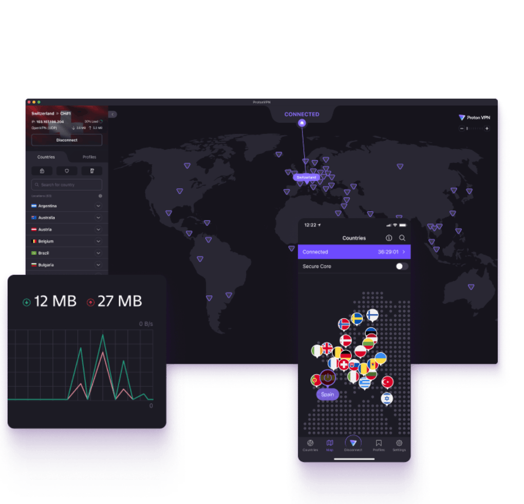 Uygulamayı indirin ve Proton VPN hizmetinde oturum açın. Ardından, 110 üzerinde ülke arasından, yayın akışını izlemek istediğiniz ülkedeki bir Plus sunucusuna bağlanın.