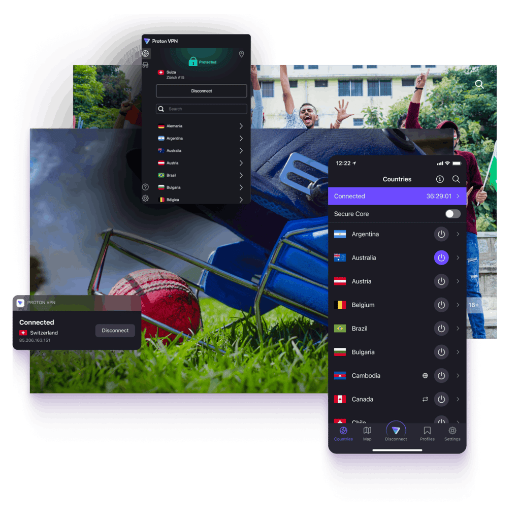 Dünyanın neresinde olursanız olun, ICC Dünya Kupası dahil her kriket maçını Proton VPN ile çevrim içi izleyebilirsiniz.