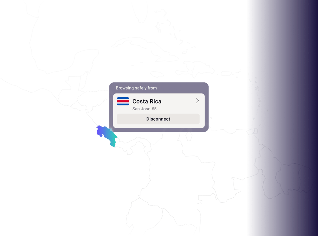 İnternette kolayca gezinti yapmak, gizliliğinizi korumak ve güvenliği sağlamak için Kosta Rika'daki bir sunucuya bağlanın.