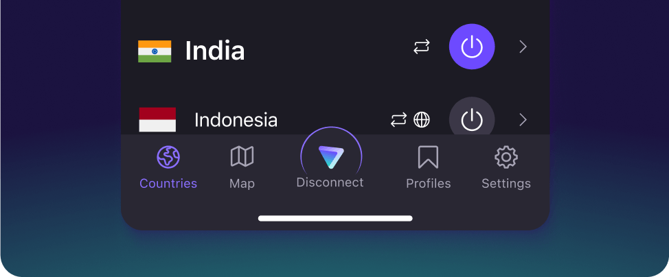 Hindistan'daymış gibi gezinebilmek için, Hindistan'a yönelik (fiziksel olarak Singapur'da bulunan) Smart Routing sunucularımızdan birini seçin. Dünya çapındaki yerel içeriğe erişmek veya Hindistan'daki sansürü aşmak için başka bir ülkede bir sunucu seçin.