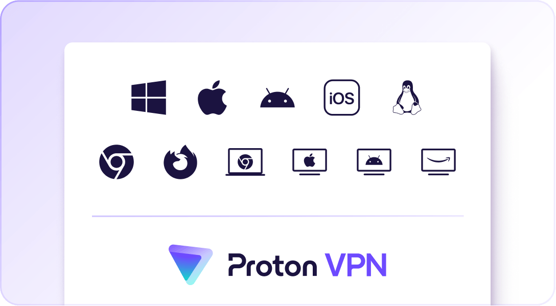 Bạn cần có khả năng bảo vệ hoạt động trực tuyến dù bạn sử dụng thiết bị nào, đó là lý do chúng tôi tạo ra ứng dụng cho mọi nền tảng. Dù đang lướt mạng xã hội trên điện thoại thông minh hay xem Netflix trên TV thông minh, bạn đều có thể sử dụng Proton VPN để bảo vệ quyền riêng tư.