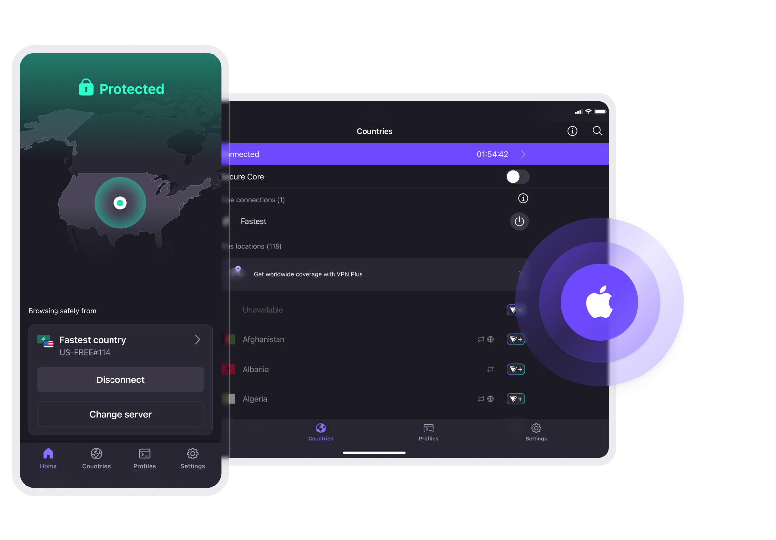 Proton VPN cho iPhone (iOS) và iPad (iPadOS) cho phép duyệt web riêng tư và vượt qua kiểm duyệt internet.