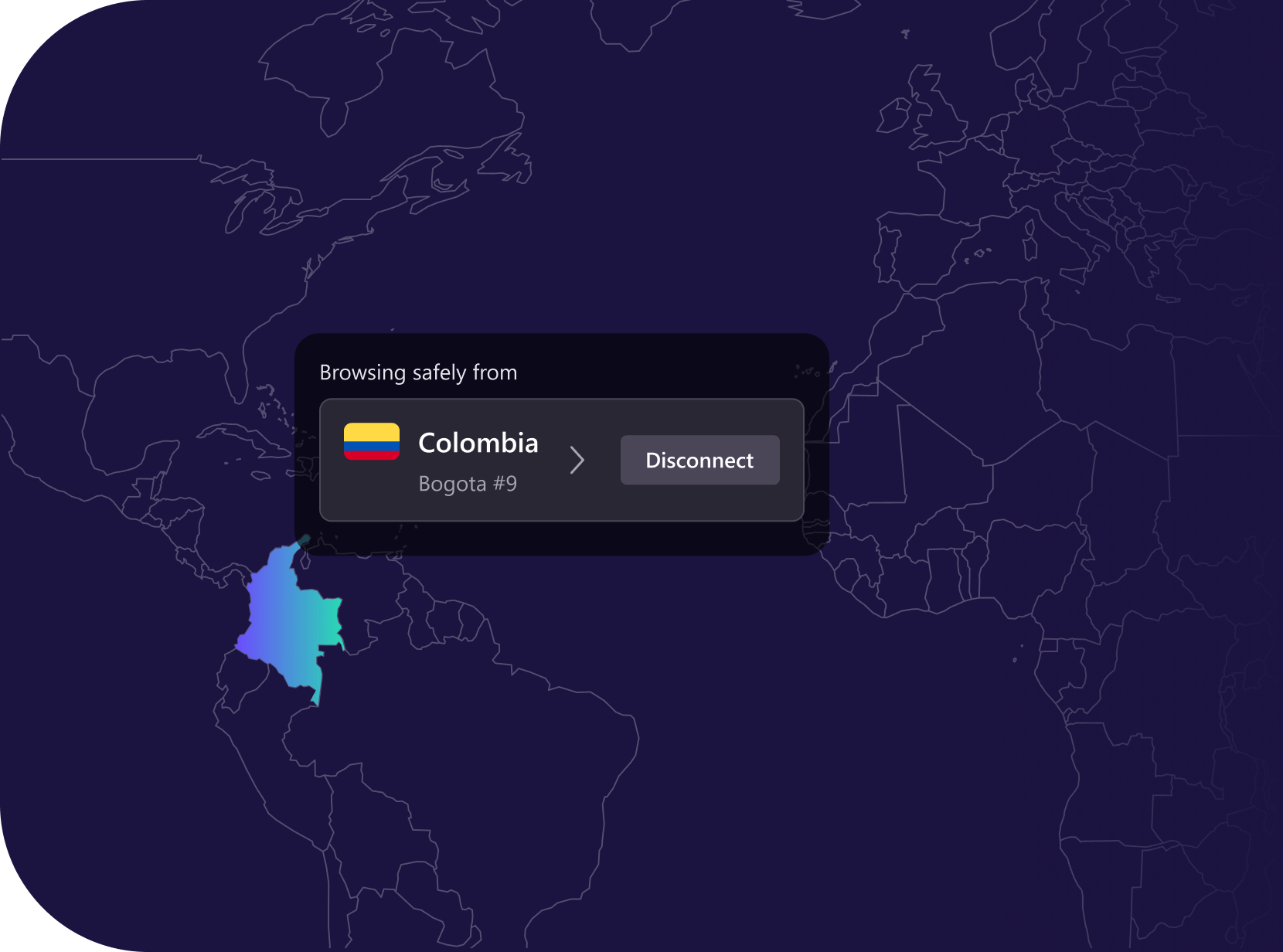 The internet should be free and accessible to everyone. By using Proton VPN, you can connect to our fast, reliable, and secure servers in Colombia and browse the internet using a Colombian IP address.